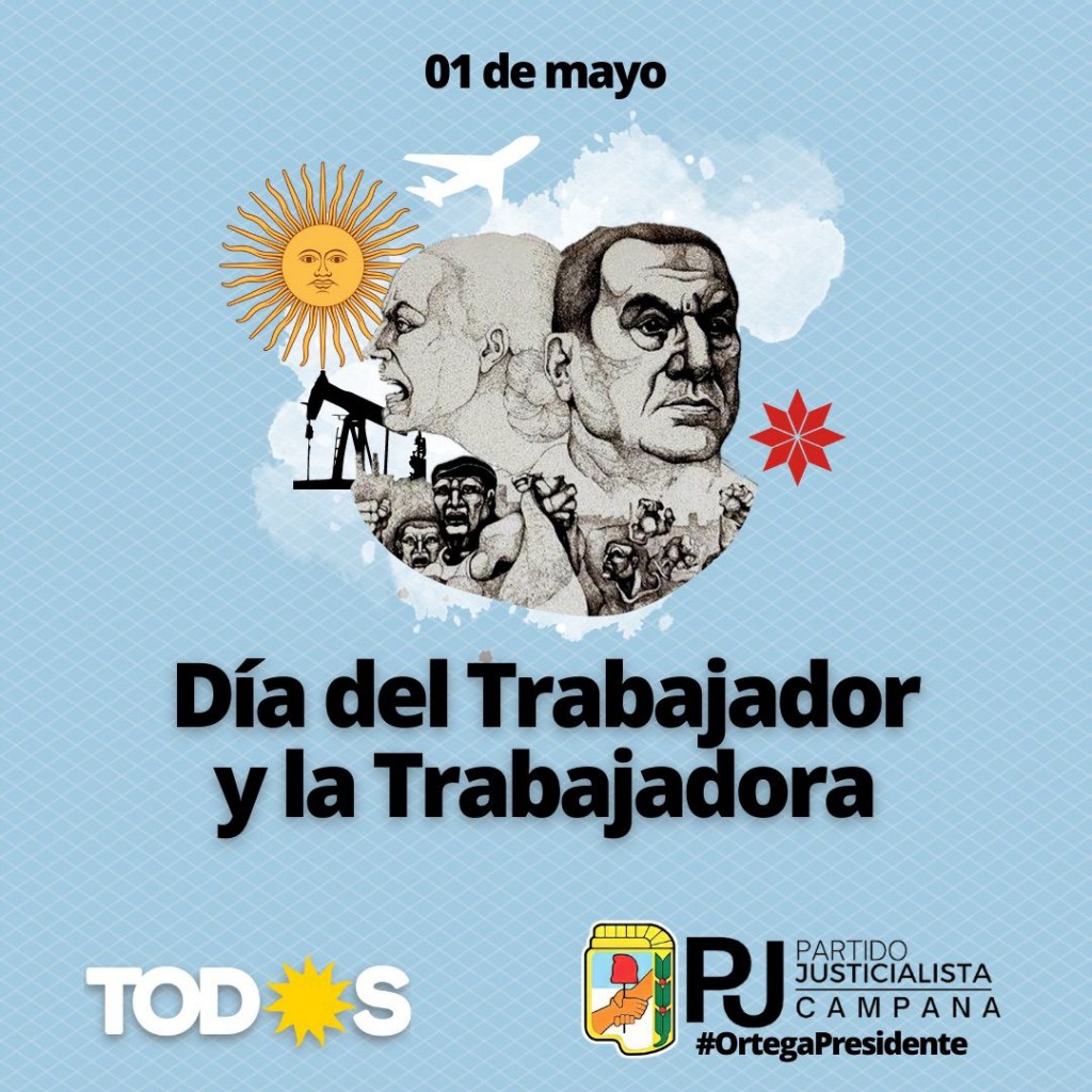 En el Día de las y los trabajadores, el Partido Justicialista de Campana encabezado por Carlos Ortega reafirma los dichos de nuestro histórico líder y se compromete a continuar la lucha por una Patria libre, inclusiva y con justicia social.