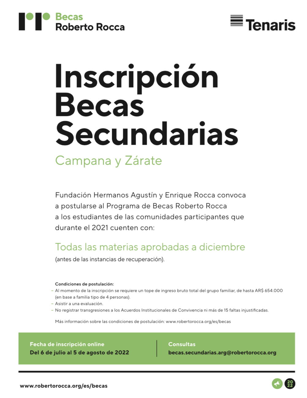 Hasta el 5 de agosto, los y las estudiantes de nivel secundario podrán postularse a las Becas Roberto Rocca que otorgan Tenaris y la Fundación Hermanos Agustín y Enrique Rocca. Como todos los años, se asignarán cupos en las comunidades de Campana y Zárate, en la provincia de Buenos Aires, y en las demás comunidades donde la compañía tiene operaciones.
