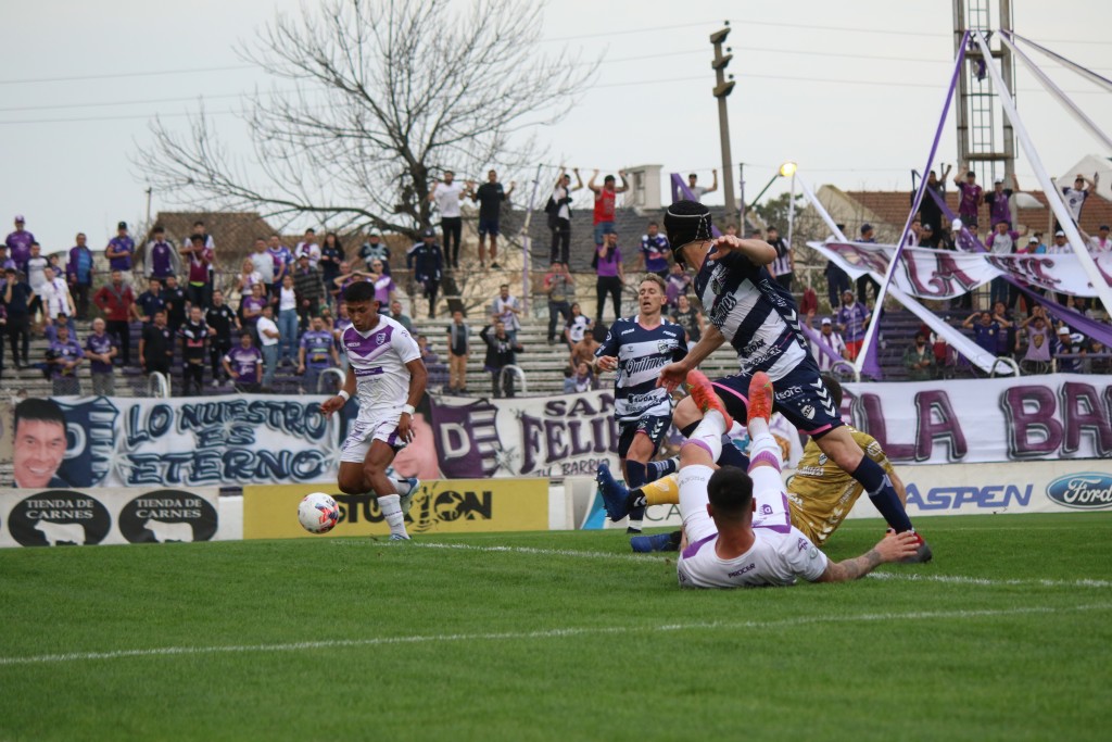 En el primer tiempo el "violeta" jugó mejor y salía con pelota dominada con Solís para que Prim intentará con pases filtrados para generar situaciones sobre el arco del "mate".Fue así como un desborde de Resquín le dió la posibilidad al capitán de marcar el gol sobre el cierre del primer tiempo.