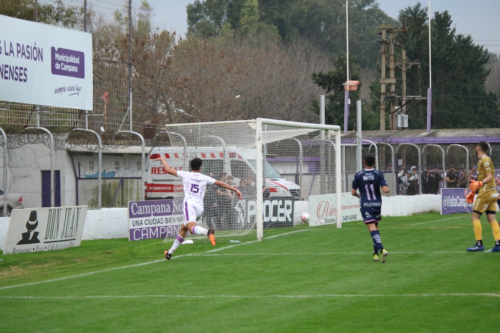 Bajo la lluvia, en un campo que aguantó bien las condiciones climáticas el "violeta" volvió a ganar como visitante con un gol de Cristian Broggi de penal en la parte final del juego.Se lo empataron a Villa Dálmine en el final