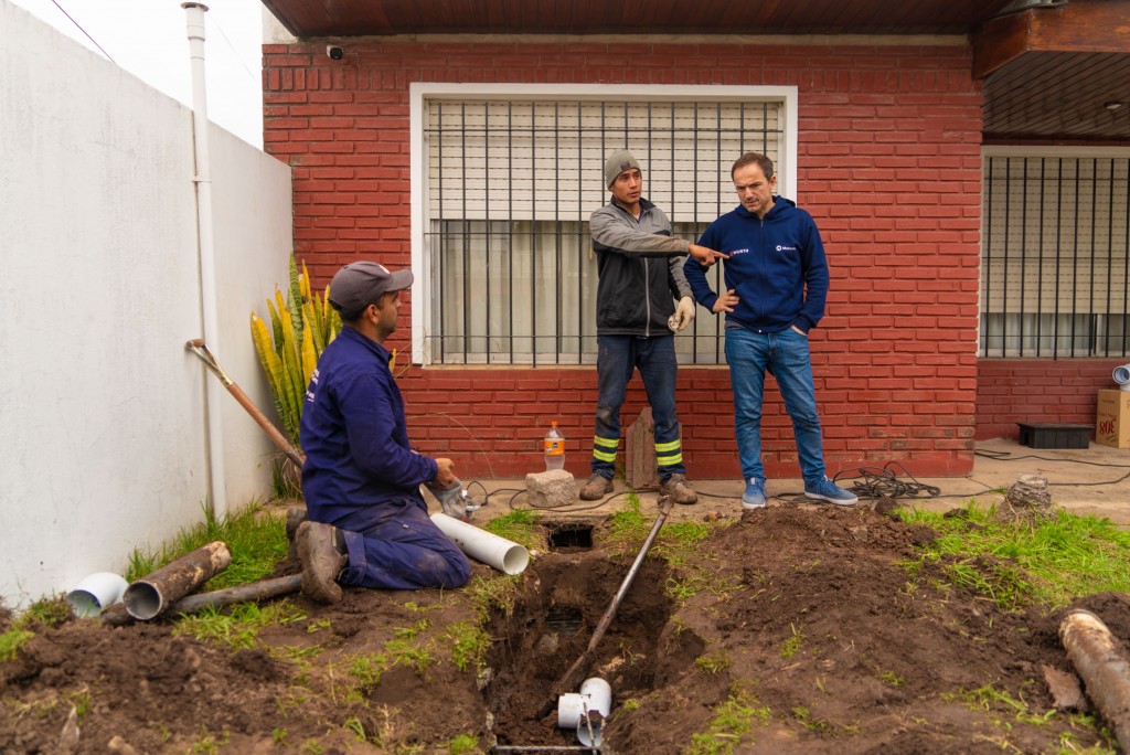 Los trabajos a cargo de una cuadrilla de la Secretaría de Espacio Público se ejecutan tanto en barrios donde se amplió la red cloacal como también en aquellos que ya contaban con el servicio, pero por distintos motivos las viviendas no estaban conectadas a la misma.