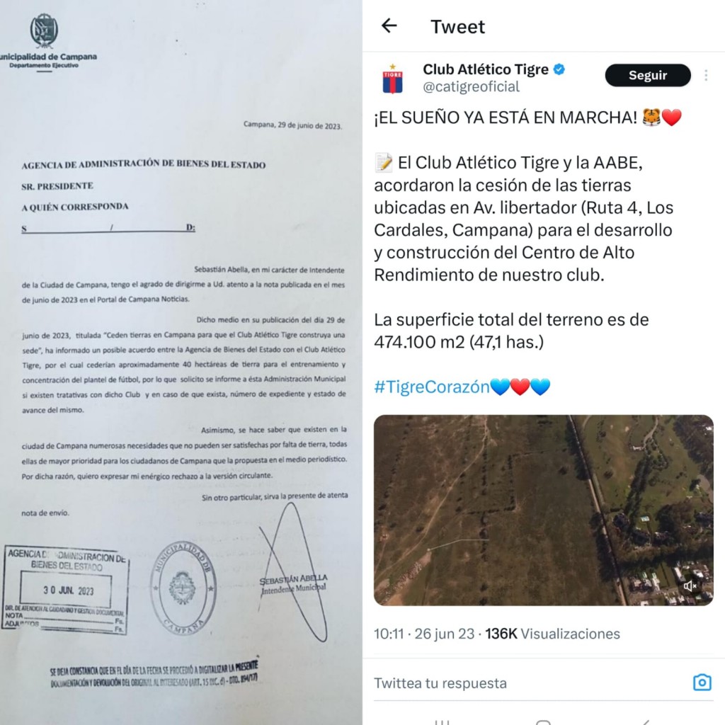 Luego que el Club Atlético Tigre informara un acuerdo con la Agencia de Administración de Bienes del Estado (AABE) para obtener un predio de 47 hectáreas en Río Luján, el intendente Sebastián Abella manifestó su “enérgico rechazo” a esta posibilidad en una nota que le envió al organismo.