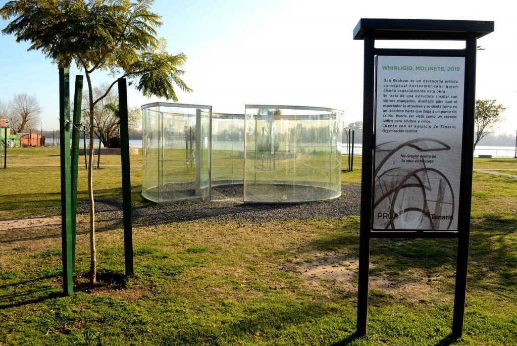 Los espejos son reflexivos y transparentes cambiando esta condición de acuerdo a los cambios de luz solar. A medida que los espectadores de cada lado caminan por este espejo bidireccional, se puede observar los cuerpos de cada uno mirando a su vez aquello que integra y rodea el nuevo Paseo Costanero. El trabajo puede ser visto como un espacio lúdico o como una divertida casa de juegos para las y los más chicos.