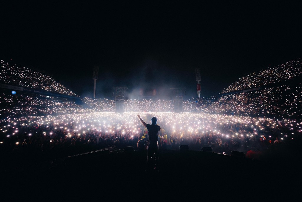 Uno de los momentos más emotivos llegó cuando el show se trasladó a un escenario más pequeño, ubicado en el centro del campo, donde Luck Ra ofreció un set acústico con algunos de sus temas más sensibles y cercanos, generando un clima íntimo en medio de un estadio repleto.
