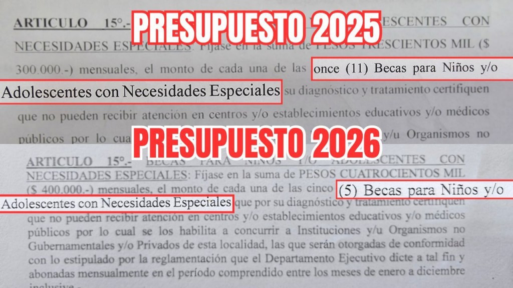 Con numerosos cuestionamientos de parte del bloque Fuerza Patria, días atrás, se trató en el Honorable Concejo Deliberante, el Presupuesto Municipal 2026. Desde el bloque de Concejales de Fuerza Patria cuestionaron fuertemente la reducción de recursos destinados a becas para niños y adolescentes con necesidades especiales, que por su diagnóstico o tratamiento, certifiquen que no pueden recibir atención en centros/establecimientos educativos y/o médicos lo que los habilita a concurrir a instituciones y/u organismos gubernamentales o privados de la ciudad.