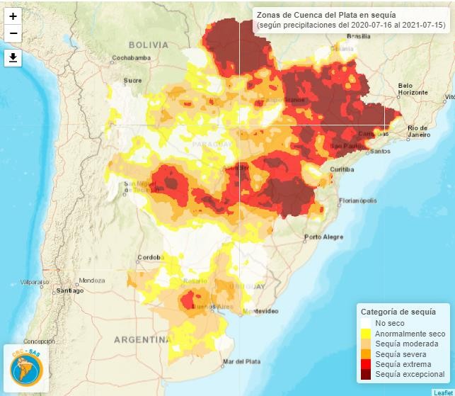 En nuestro país se está dando una situación de déficit de lluvias similar a la que ocurre en Brasil. Las provincias del Litoral y centro-norte argentino también registran precipitaciones por debajo de lo normal desde mediados del 2020, lo que agrava aún más el problema. El déficit no es solo a nivel hidrológico -ríos- sino que el suelo también sufre de escasez de agua.