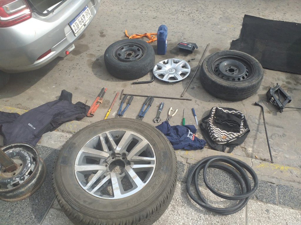 En poder de los imputados de 35 y 44 años respectivamente, se secuestraron varios neumáticos y herramientas con las que concretaban los hechos.