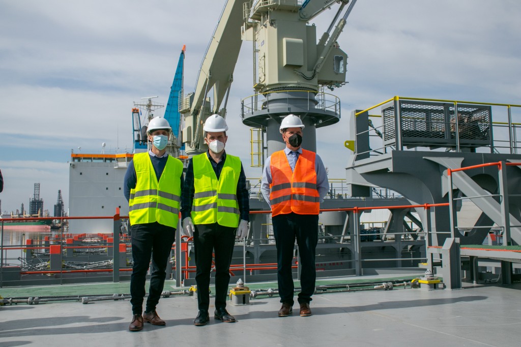 Acompañando tan significativo hecho, el intendente Sebastián Abella, se hizo presente en el puerto junto al subsecretario de Vías Navegables, Leonardo Cabrera; autoridades de Aduana; Senasa y Prefectura de Campana; Comisión Directiva del Centro de Navegación, Directivos de Plate Brokers y exportadores.