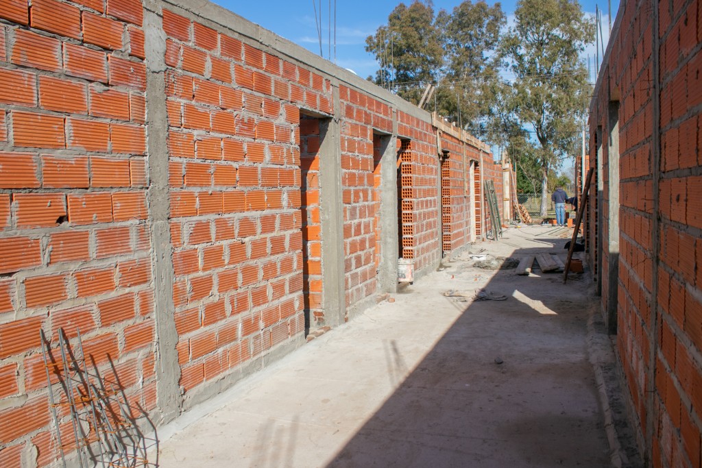 Ahora se construye la mampostería y se efectúa el llenado de los encadenados superiores para continuar luego con la instalación de gas y la colocación de los premarcos de las aberturas.