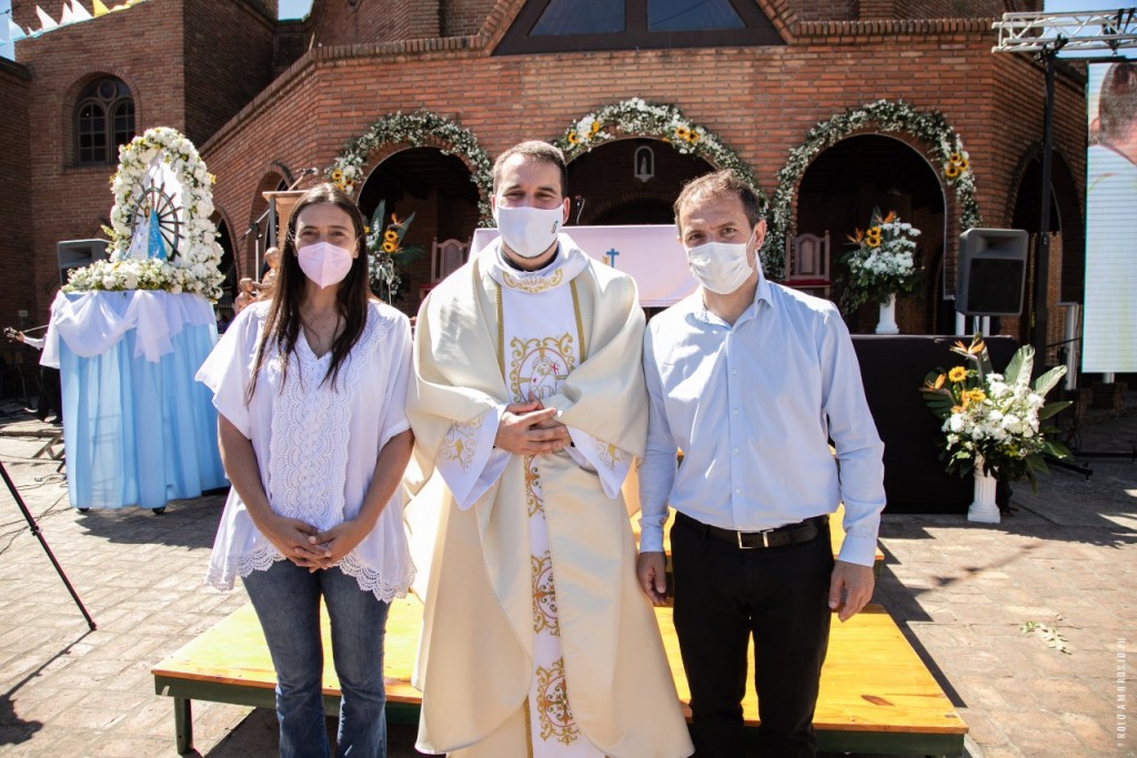 Al finalizar la ceremonia, que fue presidida por monseñor Pedro María Laxague ante la comunidad rogacionista, tanto el Intendente como Elisa felicitaron al nuevo sacerdote y lo invitaron a trabajar de forma conjunta, siempre pensando en el bienestar de los vecinos.