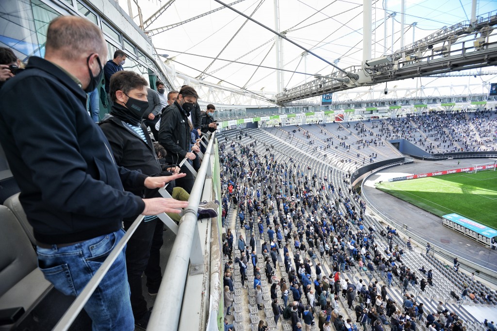 El gobernador de la provincia de Buenos Aires, Axel Kicillof, asistió este domingo al partido disputado entre Gimnasia y Esgrima La Plata y Sarmiento de Junín en el Estadio Único Diego Armando Maradona. Estuvo acompañado por el jefe de Gabinete de Ministros, Martín Insaurralde, el jefe de Asesores, Carlos Bianco, y el subsecretario de Deportes, Javier Lovera.