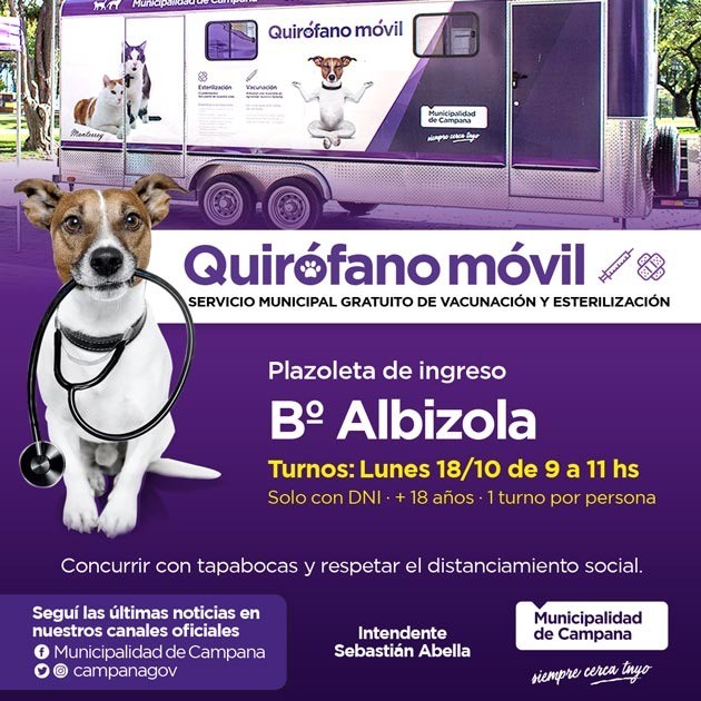 La Dirección General de Calidad Ambiental, Bromatología y Zoonosis del Municipio avanza con el cronograma del quirófano móvil y la semana entrante visitará el barrio Albizola.