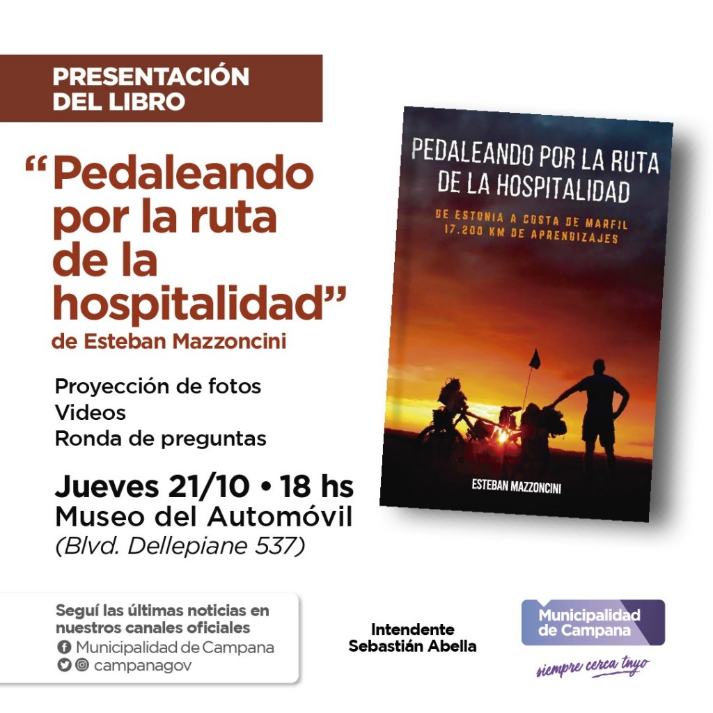 En una propuesta impulsada por la Dirección de Turismo del Municipio, dependiente de la Secretaría de Desarrollo Económico, este jueves a las 18 se presentará el libro “Pedaleando por la ruta de la hospitalidad”.
