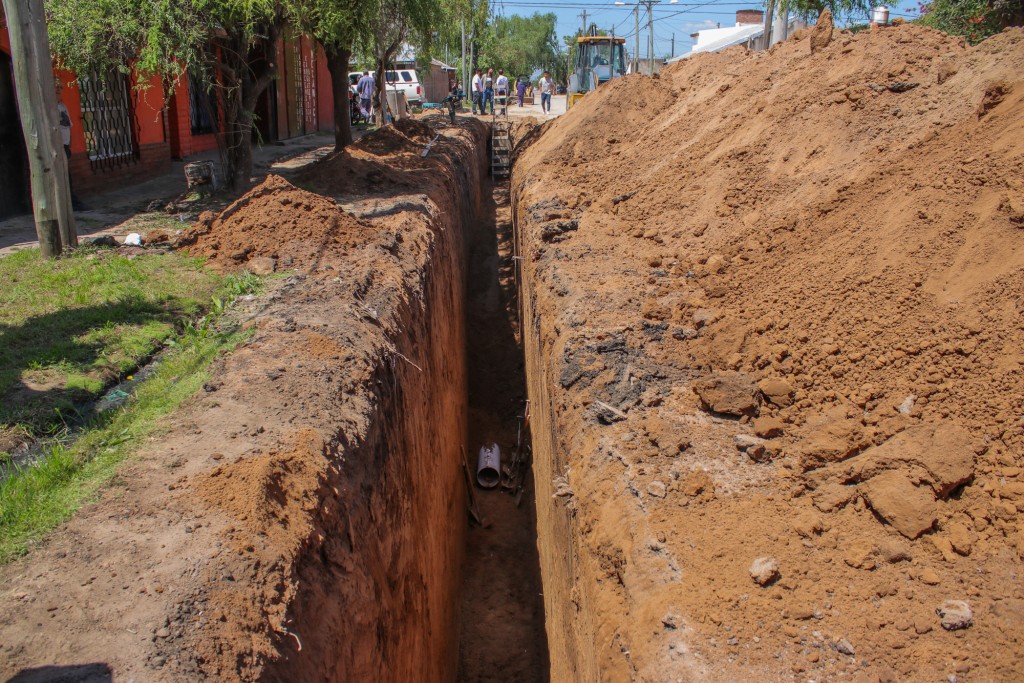 El Municipio ya colocó 400 metros de cañería de la nueva red que permitirá mejorar el funcionamiento del servicio en las zonas que ya cuentan con las cloacas y, en un futuro, extenderlo hacia La Esperanza y La Argentina.
