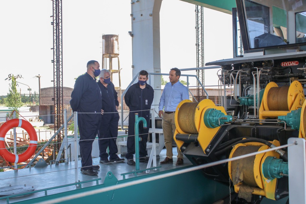 El intendente Sebastián Abella acompañó este miércoles por la mañana la presentación de la draga nacional “Gloria P.”, en la sede de local de SPI Astilleros y destacó la importancia de la obra para Campana “porque la posiciona como eje para el desarrollo de la industria naval”.