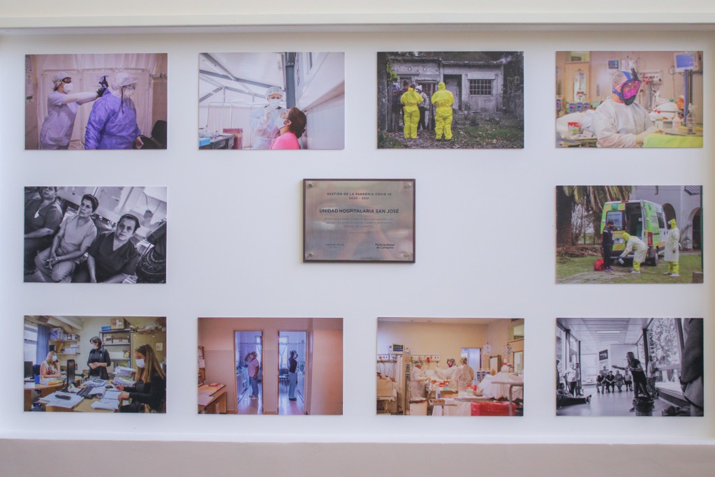 “Gracias por cuidarnos”, reza la placa que el intendente Sebastián Abella, la secretaria de Salud, Cecilia Acciardi; y la subsecretaria, Eleonora Penovi, descubrieron en el hall del nosocomio, la cual está acompañada por una serie de fotografías representativas de los meses más críticos que fueron tomadas en distintas ocasiones por los fotógrafos de la Secretaría de Comunicación.