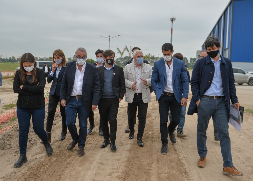 El gobernador de la provincia de Buenos Aires, Axel Kicillof, recorrió este lunes el Parque Industrial de Logística Norlog en el municipio de Tigre, donde se están construyendo nuevos espacios para sumar a 120 pequeñas y medianas empresas. Fue junto al intendente local, Julio Zamora; la candidata a concejala Gisela Zamora; el gerente comercial del establecimiento, Gabriel Lorenzo; y el director de Andreani Desarrollos Inmobiliarios, Pablo Andreani.