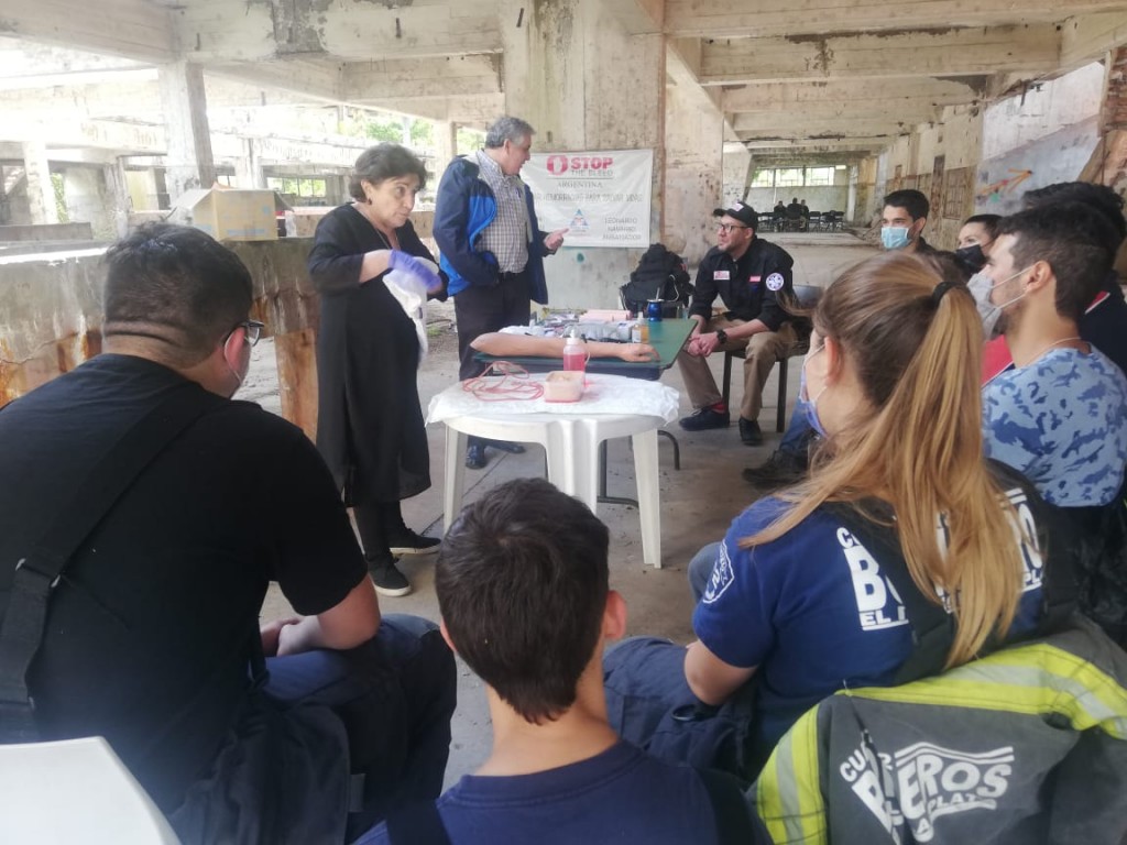 Los profesionales junto al Embajador Leonardo Navarro de la ONG Stop The Bleed (Control de hemorragias pre hospitalarias) dictaron el curso según normativas del Consenso de Hartford, con el objetivo de evitar que ninguna persona fallezca por hemorragias pre hospitalarias.