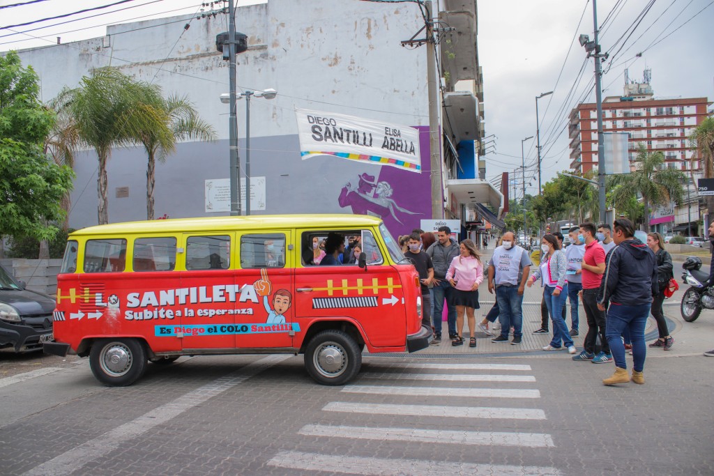 Con punto de encuentro en la plazoleta del Tango, ubicada en Rocca y Güemes, el colorido vehículo anduvo por la principal avenida comercial y la Nueva Costanera con Elisa y sus compañeros de lista Gonzalo Brutti, Roxana Mottino, Gabriela Buchajezuk, Roberto “Beto” Gómez y Mara Da Silva (suplente).