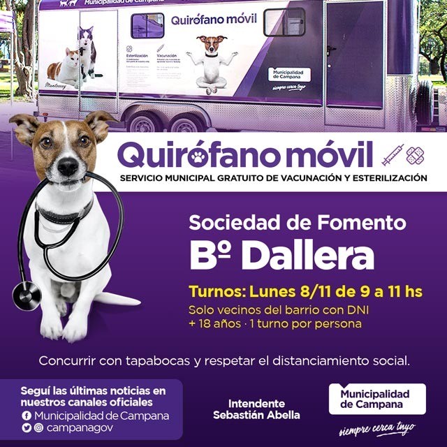 El quirófano móvil de la Dirección General de Calidad Ambiental, Bromatología y Zoonosis del Municipio realizará castraciones gratuitas en el barrio Dallera.