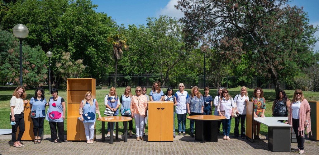 La presentación del mobiliario a representantes de las instituciones beneficiarias se realizó hoy en el jardín del Hotel Siderca con el acompañamiento de autoridades educativas del distrito. Además de la donación de los muebles, Tenaris se está encargado de su envío e instalación in situ.