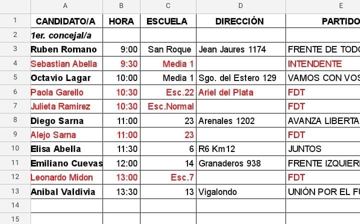 Los candidatos en nuestra Ciudad decidieron su horario de votación y lo hacen en los mismos lugares donde votaron en las elecciones P.A.S.O del mes de Setiembre.