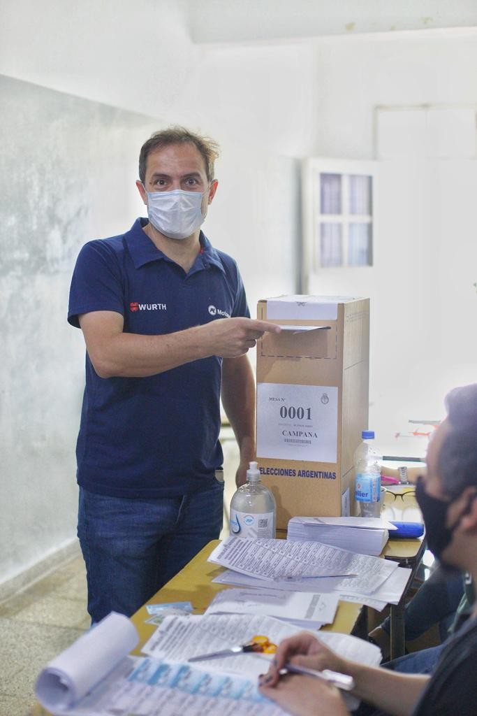 Pasadas las 9.30 de la mañana, el intendente Sebastián Abella emitió su voto en la mesa nro 1 de la escuela media 1 y auguró que la jornada democrática transcurra con normalidad.