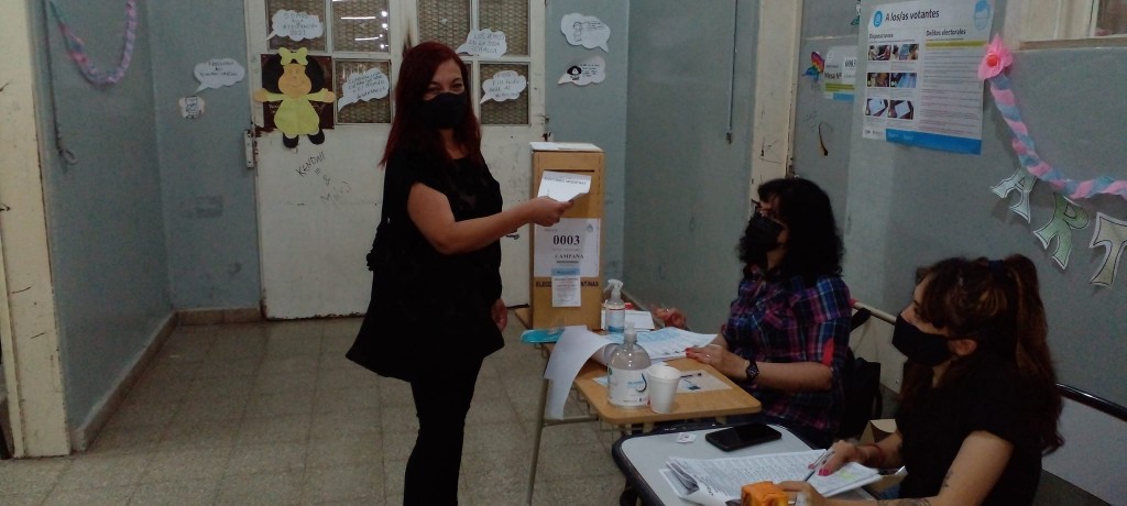 A las 10.10 horas en la mesa N° 3 de la Escuela Media N° 1 votaba la candidata de Vamos con vos Katty Altimari.