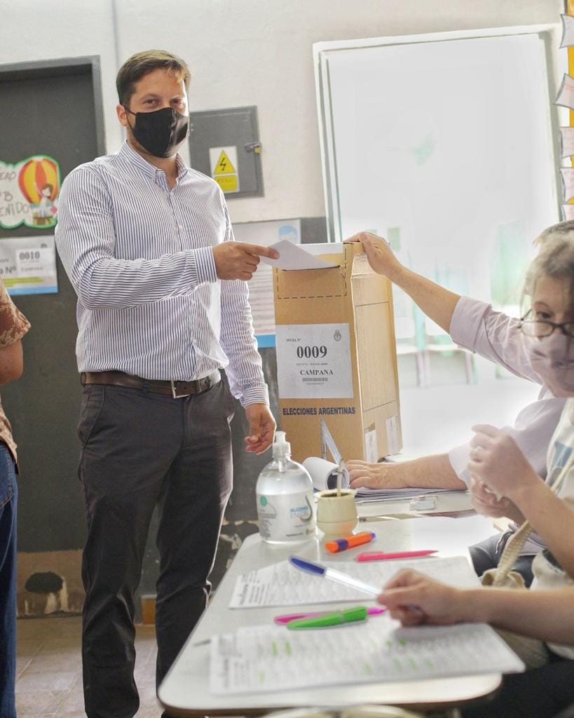 En horas del mediodía votaba en la Escuela N°8 Hipolito Yrigoyen el candidato a concejal de Juntos Gonzalo Brutti.