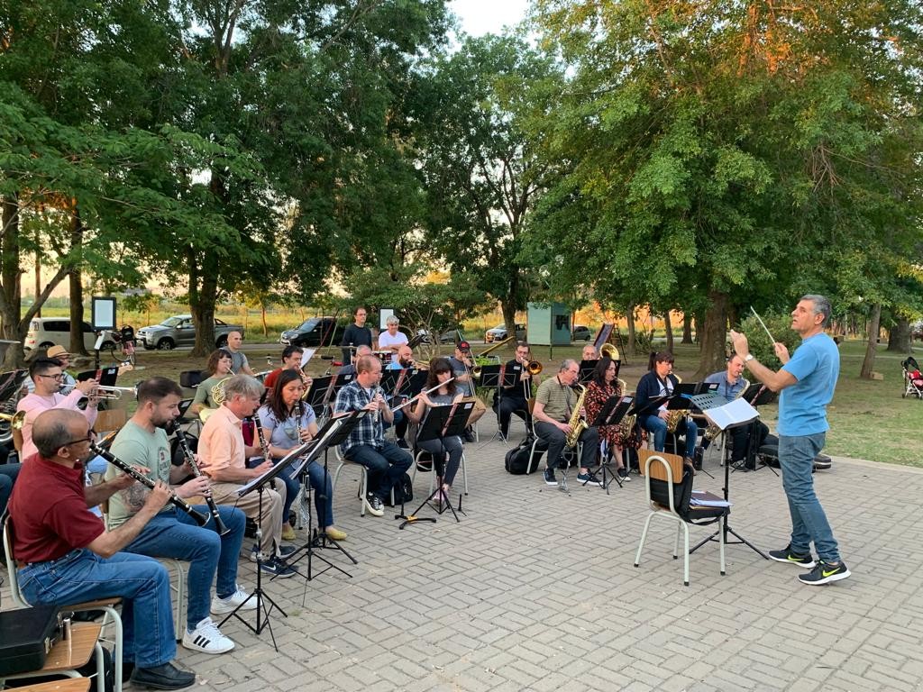 En un escenario ideal con un cálido atardecer, la Banda Municipal protagonizó un nuevo ensayo al aire libre.