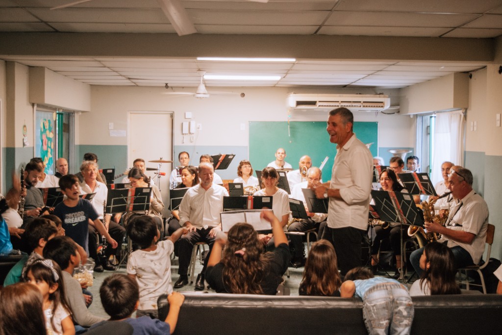 Los músicos dirigidos por el maestro Jorge Mora compartieron un cálido show en el Hogar de Niños Nuestra Señora de Lourdes.