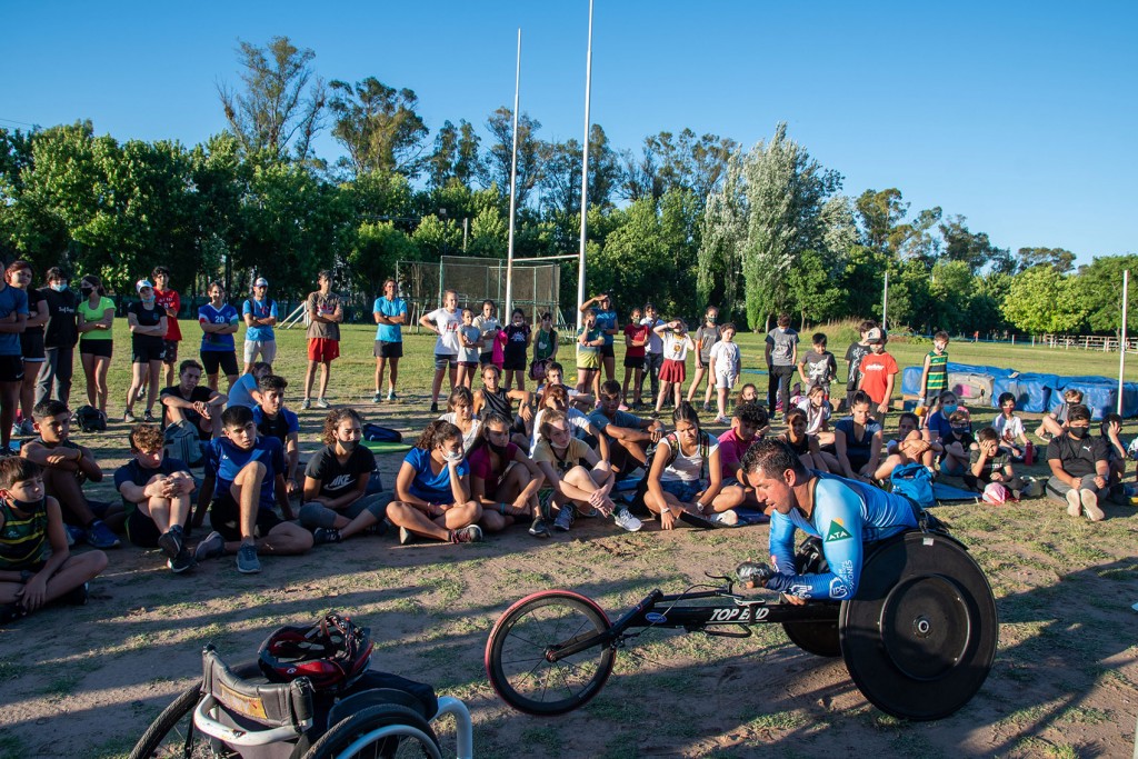 La charla fue compartida con alumnos de atletismo tanto del Municipio como del Club Ciudad de Campana quienes le hicieron preguntas al deportista y vivenciaron lo que es realizar un deporte utilizando algún equipamiento ya sea con silla de ruedas o de discapacidad visual.