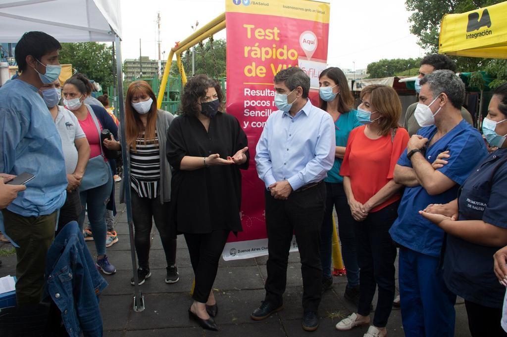 En el Día Internacional de la Lucha contra el VIH, la ministra de Salud de la Nación, Carla Vizzotti, participó junto al titular de la cartera sanitaria de la ciudad de Buenos Aires, Fernán Quirós, de una actividad de testeo rápido para la detección de VIH y sífilis realizada en el barrio 31 Padre Carlos Mugica.