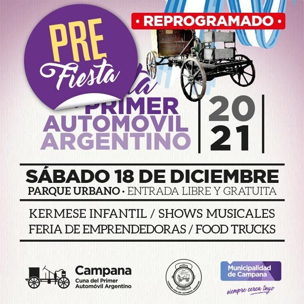 El Municipio informa sobre una nueva reprogramación de la Fiesta del Primer Automóvil Argentino que estaba prevista para este fin de semana.