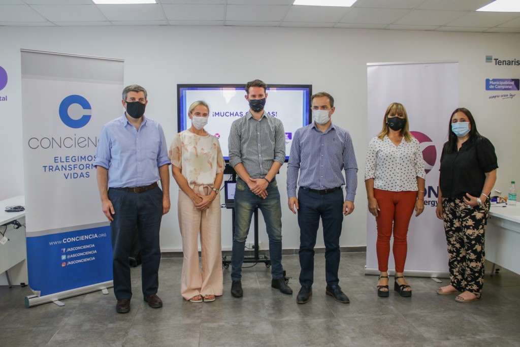 El encuentro se llevó adelante en las instalaciones del Centro Educativo Digital (CED), con la presencia del gerente de Responsabilidad Social Empresaria de Axion Energy, Roberto Dabusti; el responsable de Empleabilidad de Conciencia, Lucas Beider, y la coordinadora del programa Lazos, Paola Kasianoff.