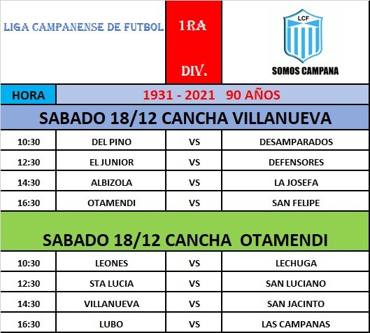 Liga Campanense programación del fin de semana