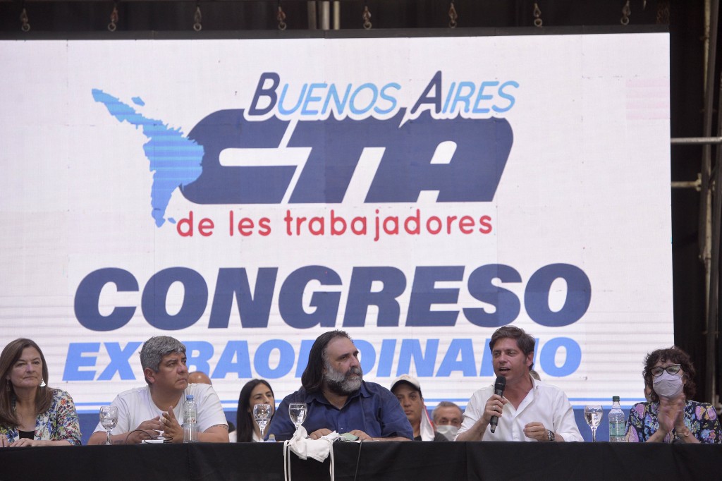 El gobernador Axel Kicillof participó esta tarde del cierre del Congreso Extraordinario de la CTA de los Trabajadores de la Provincia de Buenos Aires, junto a los secretarios generales de la CGT, Pablo Moyano, y del Sindicato Unificado de Trabajadores de la Educación, Roberto Baradel. Fue en el Club Atenas de la ciudad de La Plata, con la presencia de 800 delegados, congresales y autoridades de 42 organizaciones regionales de la central obrera.