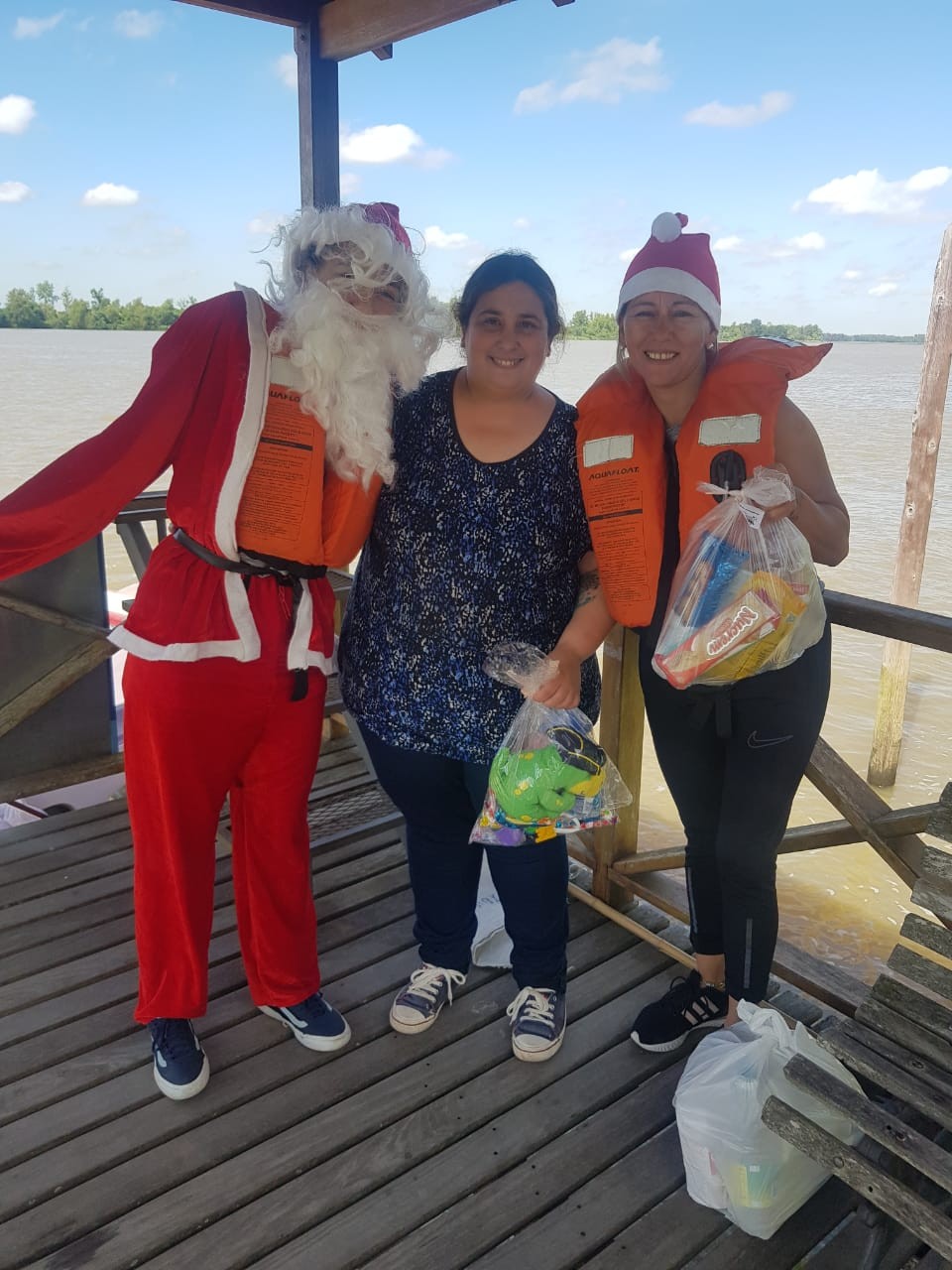 Defensa Civil, la Fundación Papa Francisco y Papá Noel visitaron a familias del Río Paraná de Las Palmas y el Canal Zorrilla para entregarles alimentos, golosinas y canastas navideñas a fin de contribuir con una celebración más amena.
