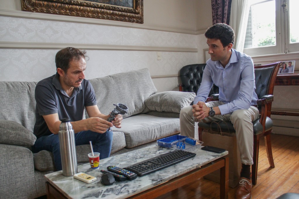 Durante su visita, el oftalmólogo especialista en cirugía de retina le contó al jefe comunal que, junto a su socio y amigo, el diseñador industrial Sebastián Solís, se dedica a la fabricación, mediante impresión 3D, de soportes para lupas y filtros para cirugía retinal.