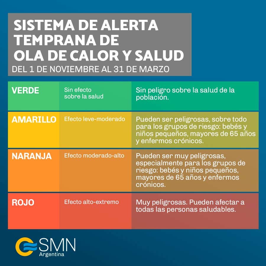 Es importante mantenerse informados sobre la evolución de las condiciones meteorológicas a través del Sistema de Alerta Temprana del Servicio Meteorológico Nacional, en https://www.smn.gob.ar/sistema_temp_extremas_calor