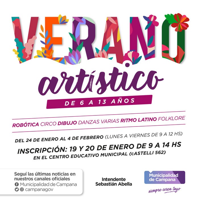 Continuando con su amplia oferta de propuestas gratuitas pensadas para los vecinos, el Municipio lanzó este lunes “Verano Artístico” destinado a niños de entre 6 y 13 años.
