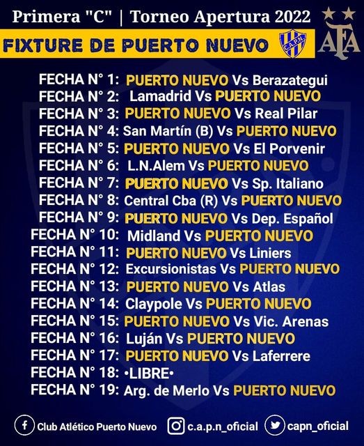 Puerto Nuevo venció 1-0 como visitante a Victoriano Arenas en el debut por la primera fecha del Campeonato 2026 de Primera C.El "portuario" conquistó el gol a los 36 del complemento tras un tiro de esquina ejecutado por Matías Sarmiento que conectó al gol Juan Pablo López.