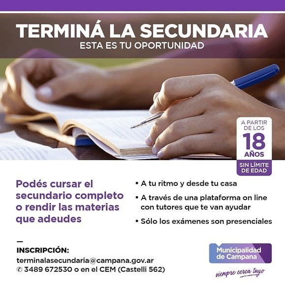 Se trata de una iniciativa del Municipio para que los vecinos, mayores de 18 años, puedan finalizar sus estudios secundarios de forma virtual y gratuita.