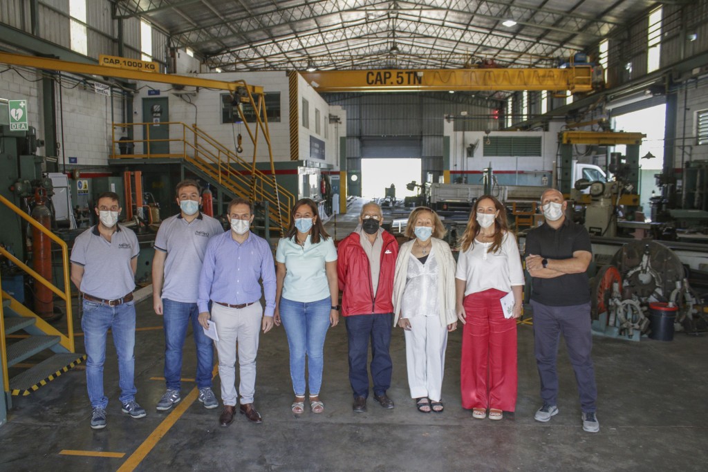 Vidal, Abella y el diputado bonaerense de Juntos Alex Campbell fueron recibidos por el presidente de la metalmecánica, Blas Raúl Pacheco y su sra Marta Chaves; el gerente general Raúl Pacheco; la gerente Recursos Humanos y RSE, Valeria Pacheco, el gerente de Innovación y Desarrollo, Miguel Francic, como así también Mateo Pacheco, 3ra generación de la empresa familiar, con quienes recorrieron la planta y se interiorizaron acerca de lo que allí se produce.