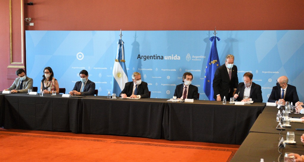 Participaron también la secretaria de Acceso a la Salud, Sandra Tirado; el subsecretario bonaerense de Finanzas, Agustín Álvarez; y el embajador de la Argentina ante la Unión Europea, Pablo Grinspun.