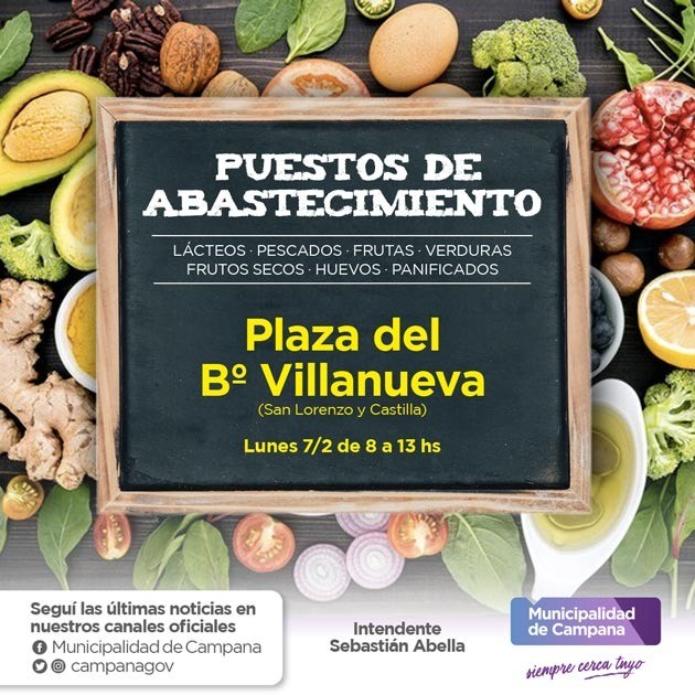 Según detallaron, la feria estará presente el lunes 7, de 8 a 13, en la plaza de Villanueva (San Lorenzo y Castilla), ofreciendo lácteos, pescados, frutas, frutos secos, verduras, huevos, panificados y mieles a bajo costo.