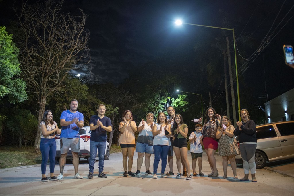 El intendente Abella recorrió la zona durante la noche para constatar su funcionamiento. Lo acompañaron vecinos que agradecieron las obras concretadas en el último año que transformaron el lugar.