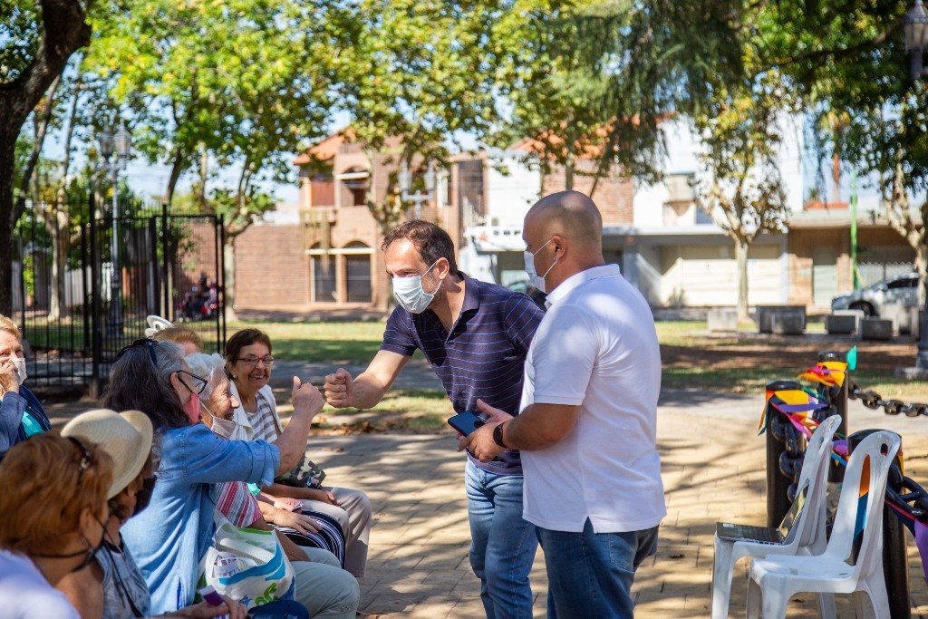 Acompañados por el intendente Abella, los adultos mayores regresaron a la plaza Italia. Este 2022, continuarán disfrutando de propuestas que incluyen espacio de salud, gimnasia, teatro, artesanías, danza y mucho más.
