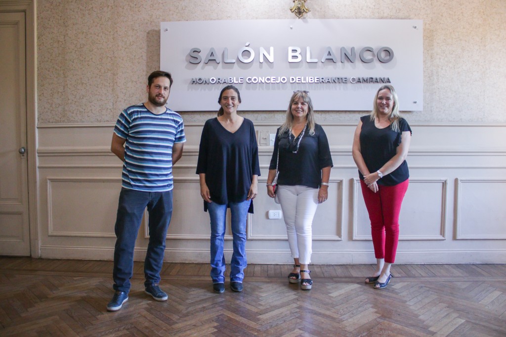 El presidente del Concejo Deliberante, Gonzalo Brutti, y la concejal de Juntos, Elisa Abella, recibieron a autoras campanenses que presentarán su libro “Malvinas 40 años, 20 cuentos y un perdón”.