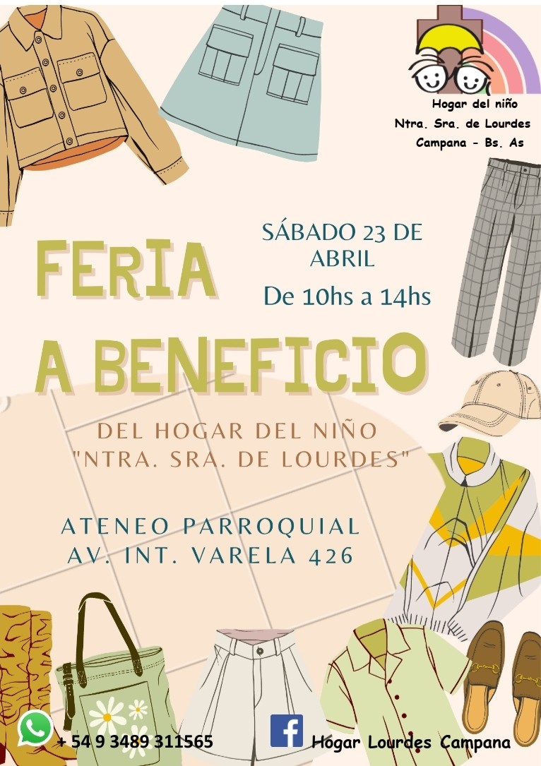 La misma se realizará el sábado 23 de abril de 2022 en el Ateneo Parroquial ubicado en Avenida Varela 426 en el horario de 10 a 14 horas para recaudar fondos a total beneficio del Hogar del Niño Nuestra de Lourdes.